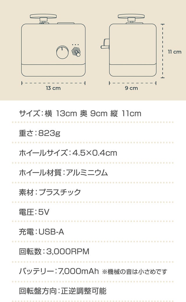 回転盤方向:正逆調整可能
