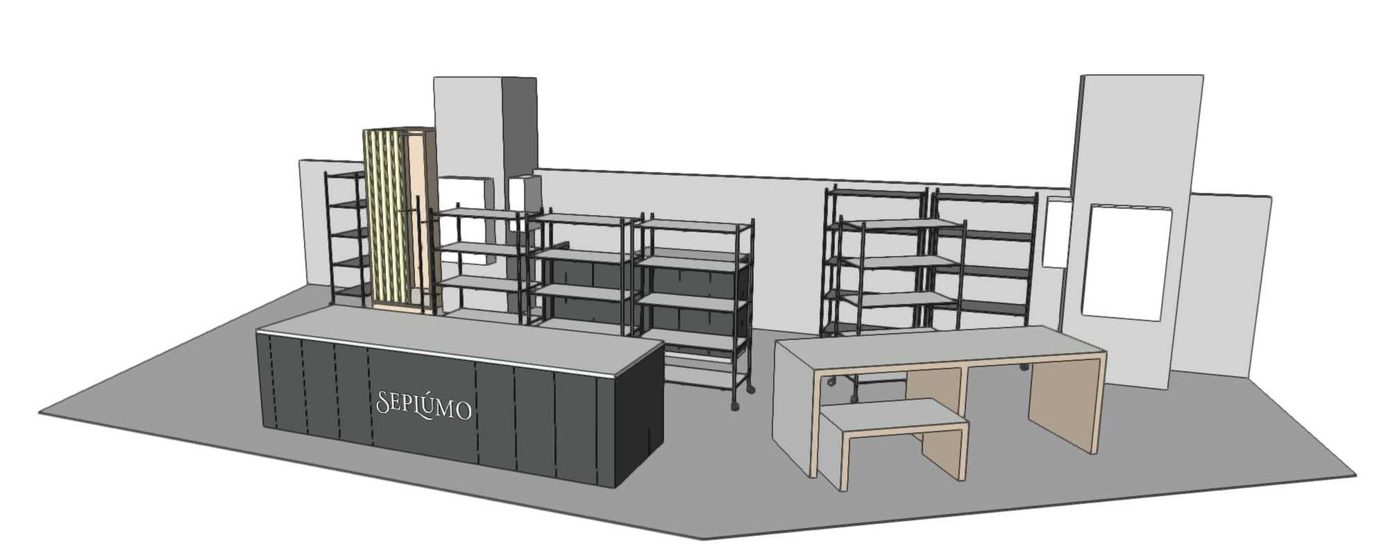 SEPLÚMOの店舗には、廃棄された洋服をアップサイクルしたPANECOの什器を活用し、サステナブルな店づくりを展開します。