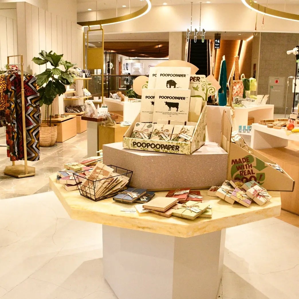 「SEPLÚMO」の商品には、それぞれストーリーがあり、ギフトにもおすすめです。タイからは、ぞうのウンチからできた一切木や化学薬品を使用していないサスティナブルな紙製品「poopoopaper(プープーペーパー)」や、ネパールからは、アーユルヴェーダの伝統的なセオリーと現代科学の知恵の融合により生まれた保湿性抜群の『ヒマラヤ産チウリバターの石鹸』等、雑貨からアパレルまで幅広く扱っていく予定です。