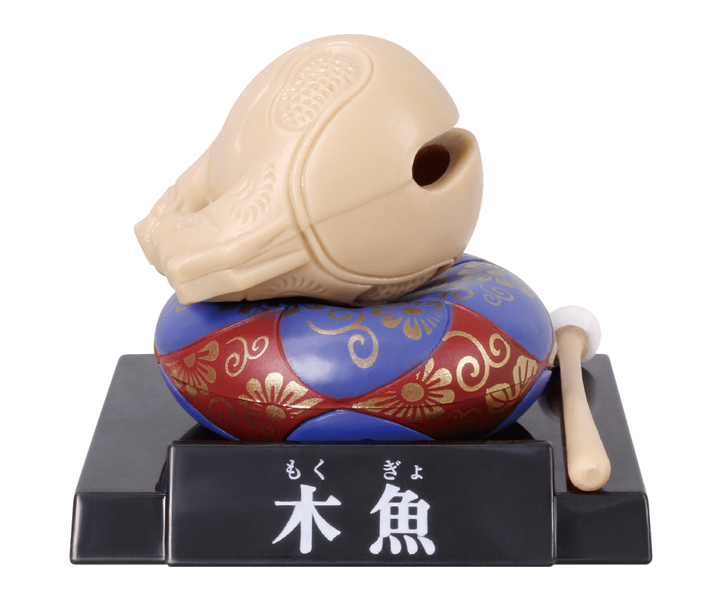 木魚の原形は、眠らない生き物と考えられていた魚の形であり、怠けず一生懸命修行に励みなさいという意味がこめられ、また眠気を覚ますために叩かれていたとも言われています。