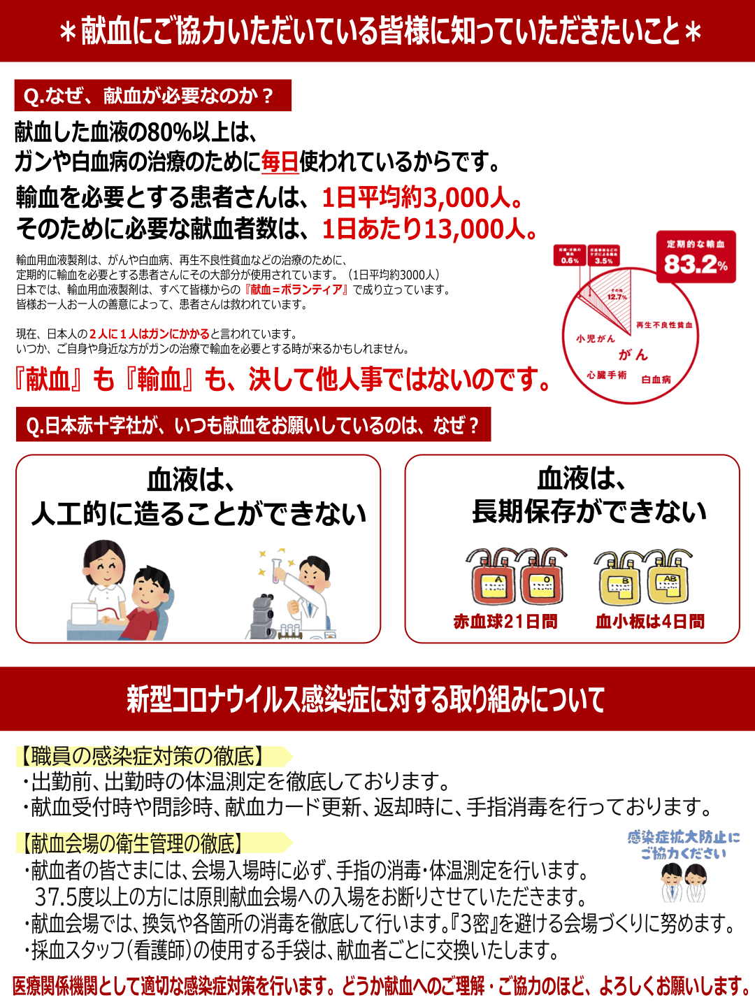 今後も引き続き、献血活動にご理解とご協力を賜りますよう、何卒よろしくお願い申し上げます。