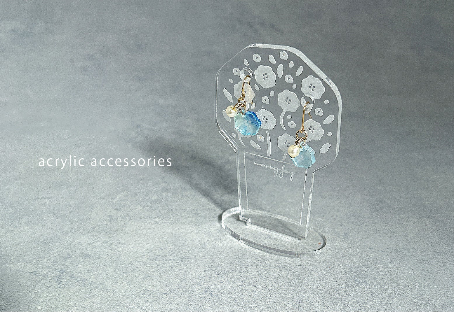 アクセサリー部分は透明アクリルマット素材を活かし、すりガラスのような質感を表現。