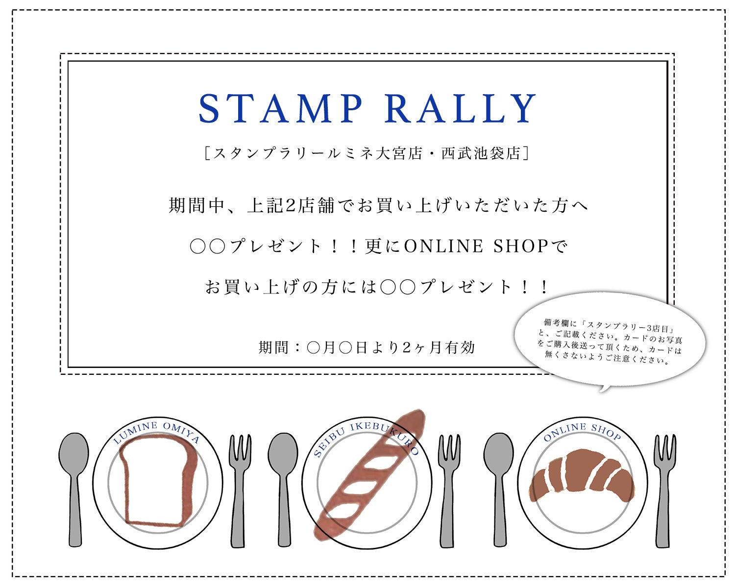 2店舗のスタンプをためる期間は、1店舗目購入日から1か月間が有効期限。