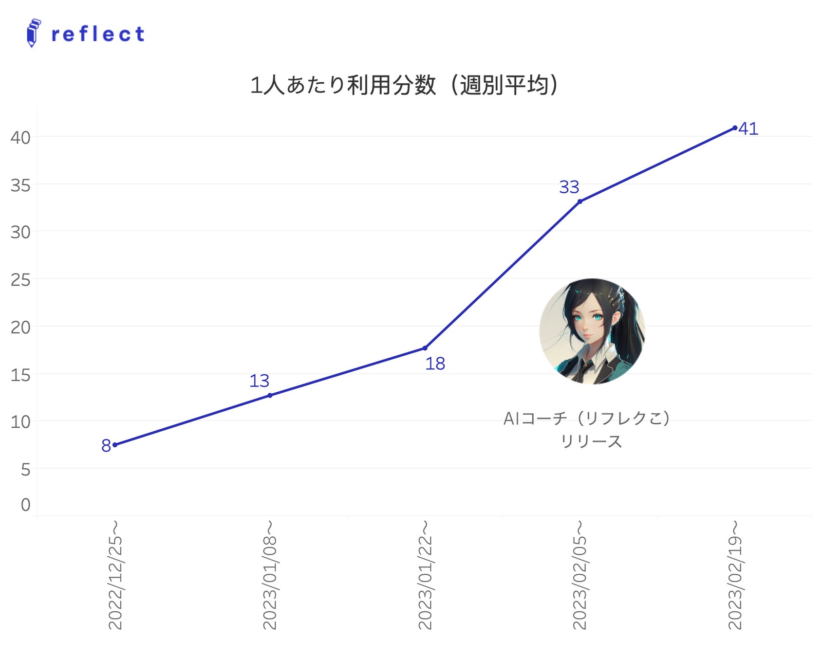 ”withAI時代到来、チームにAIコーチを”。自立学習を支援する振り返り共有ツールのリフレクトは、国内初となるChatGPT搭載AIコーチ(リフレクこ)をリリース。AI導入後ツール利用時間は2倍に。