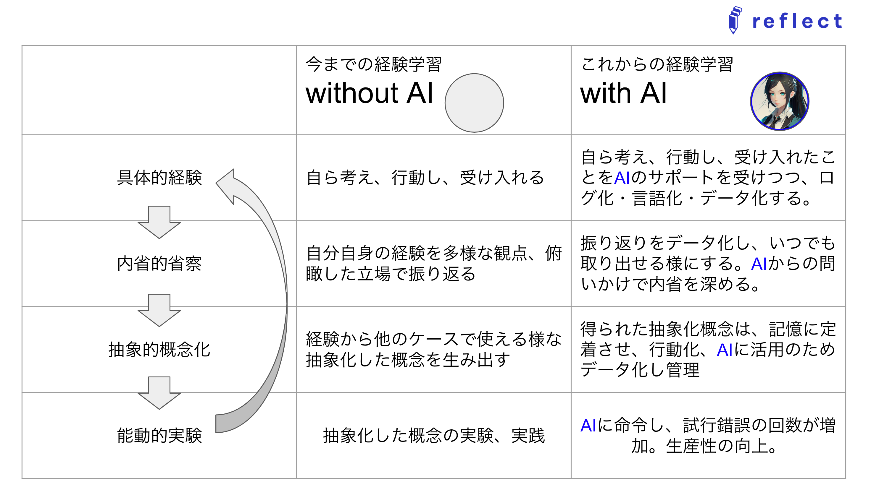 デイヴィッド・コルブ氏が提唱した経験学習モデルも、AIによって進化することが考えられます。