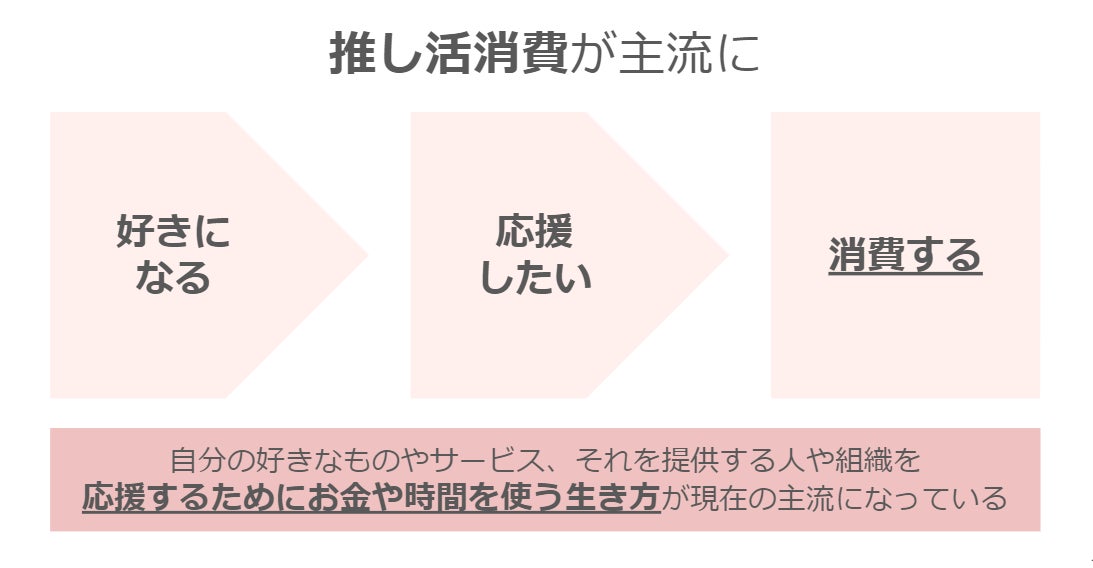 推しがそこにいなくても、今後推し活消費の考え方が広まっていく。そのためにマーケティングをしていくのがいいと言えます。