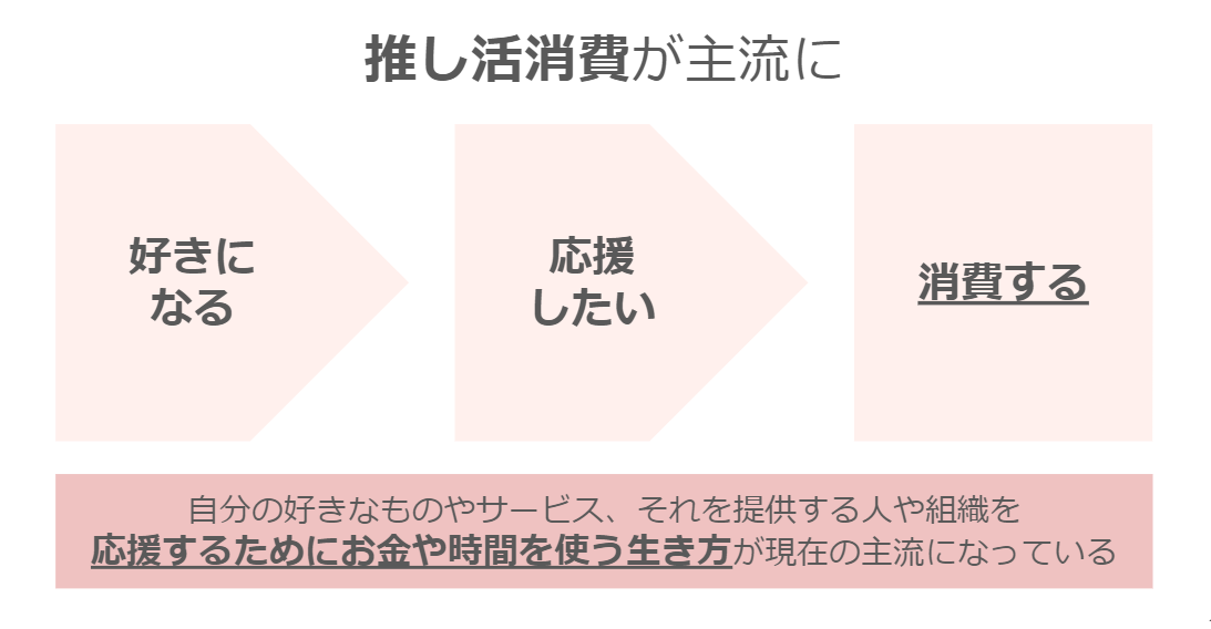 推しがそこにいなくても、今後推し活消費の考え方が広まっていく。そのためにマーケティングをしていくのがいいと言えます。