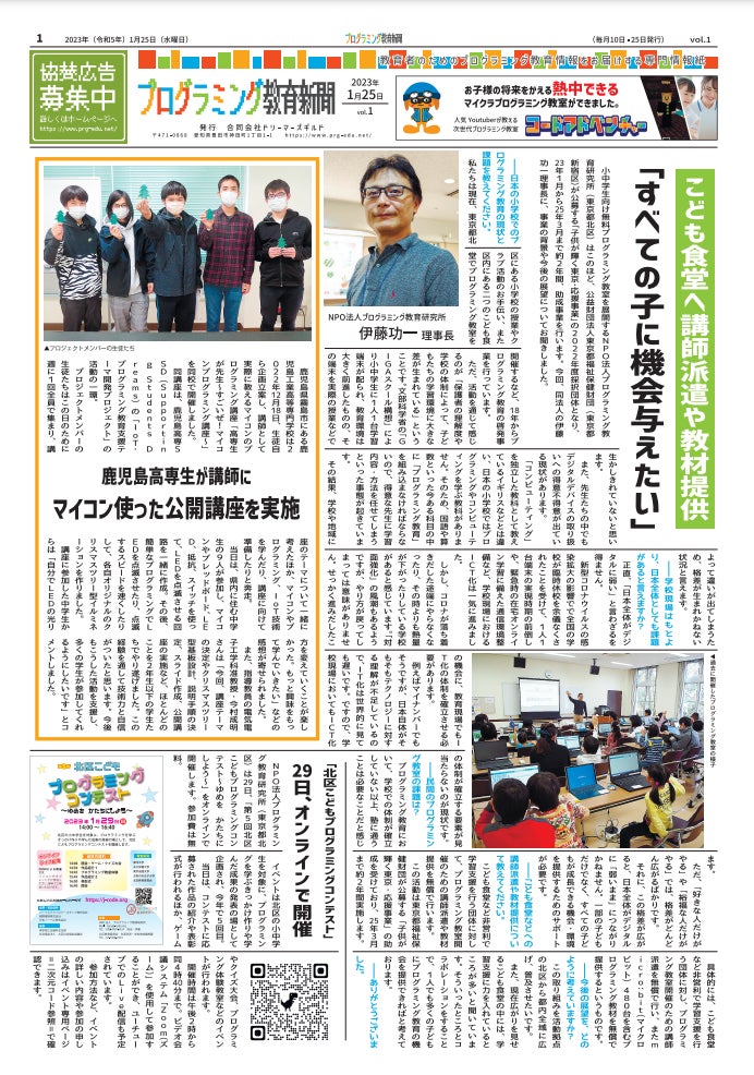 プログラミング教育新聞は、小学生~高校生までの教育に携わる教育者向けのメディアです。