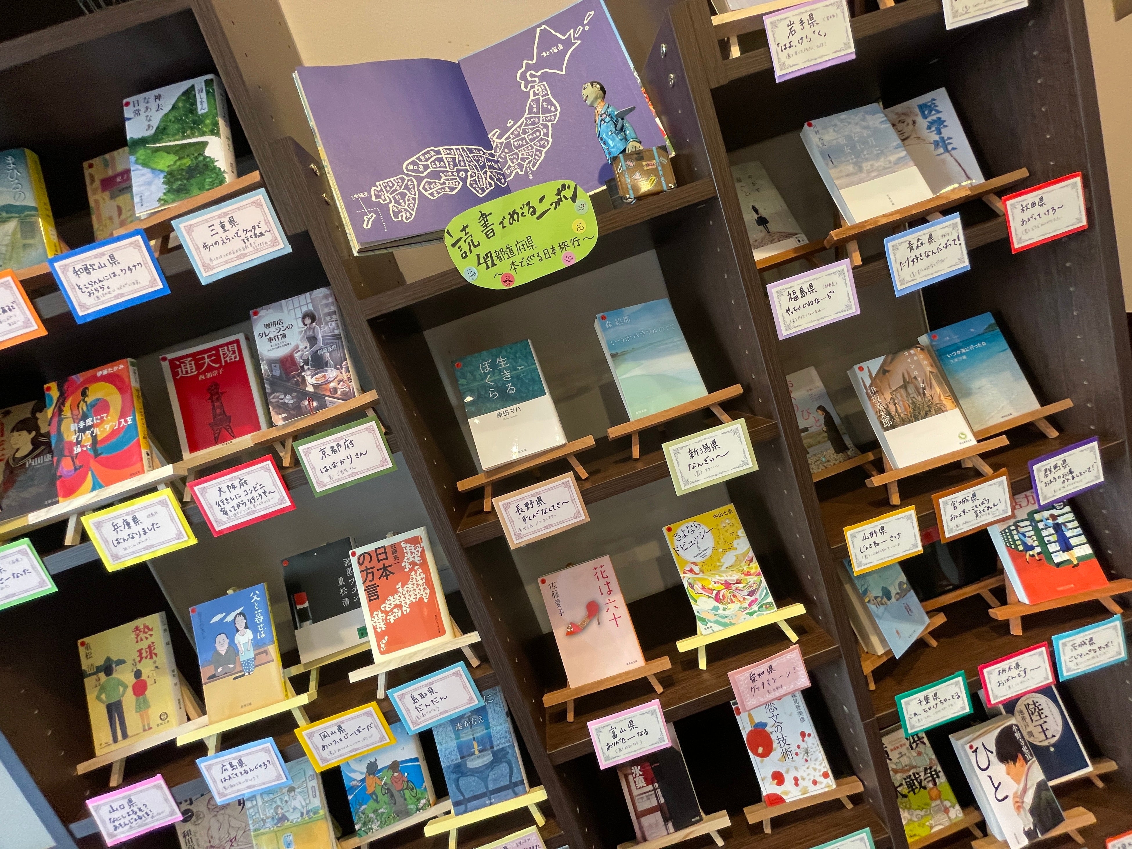それぞれの都道府県が舞台の文庫本を47冊並べ、各地の方言と共にご紹介しました。
