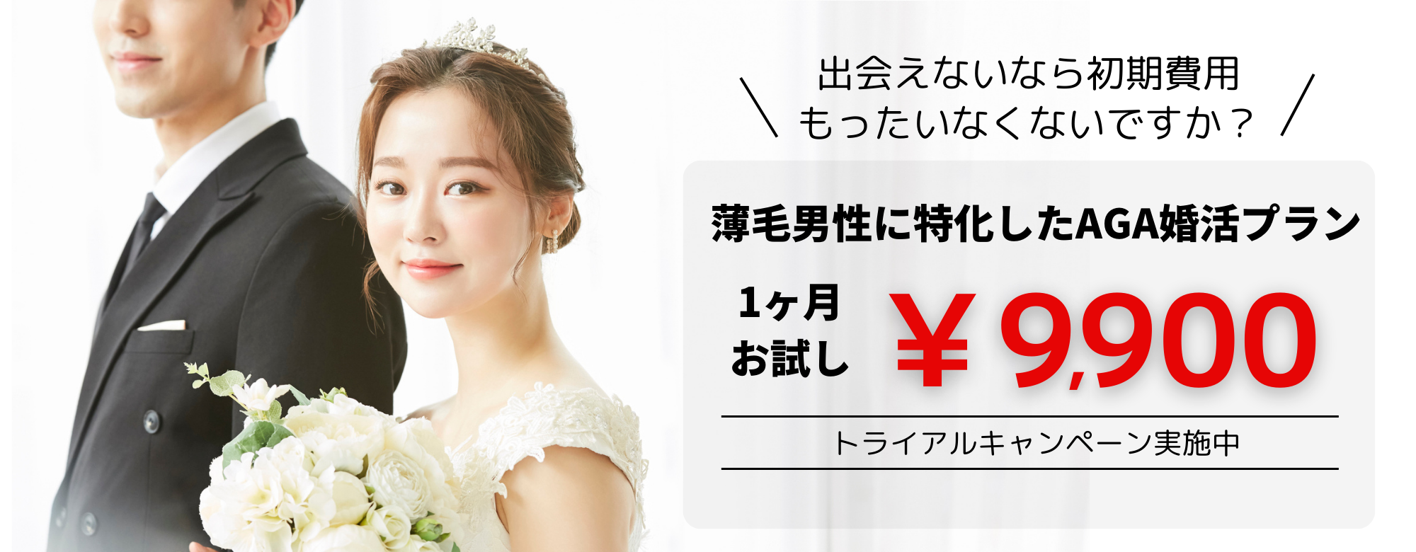 業界初!薄毛男性に特化した「AGA婚活プラン」お試し価格1ヶ月9,900円で新登場!