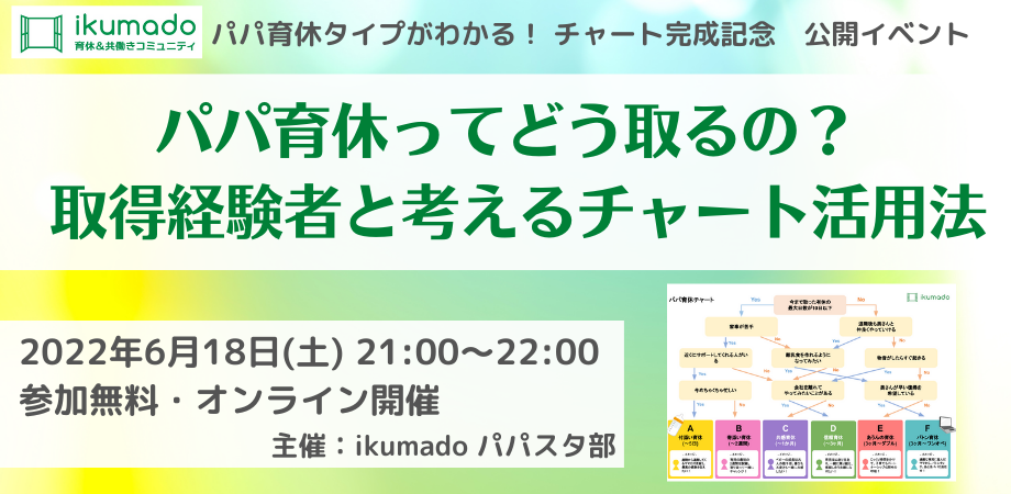 育休&共働きコミュニティ主催「パパ育休タイプがわかる! チャート完成記念イベント」6月18日(土)オンラインにて開催