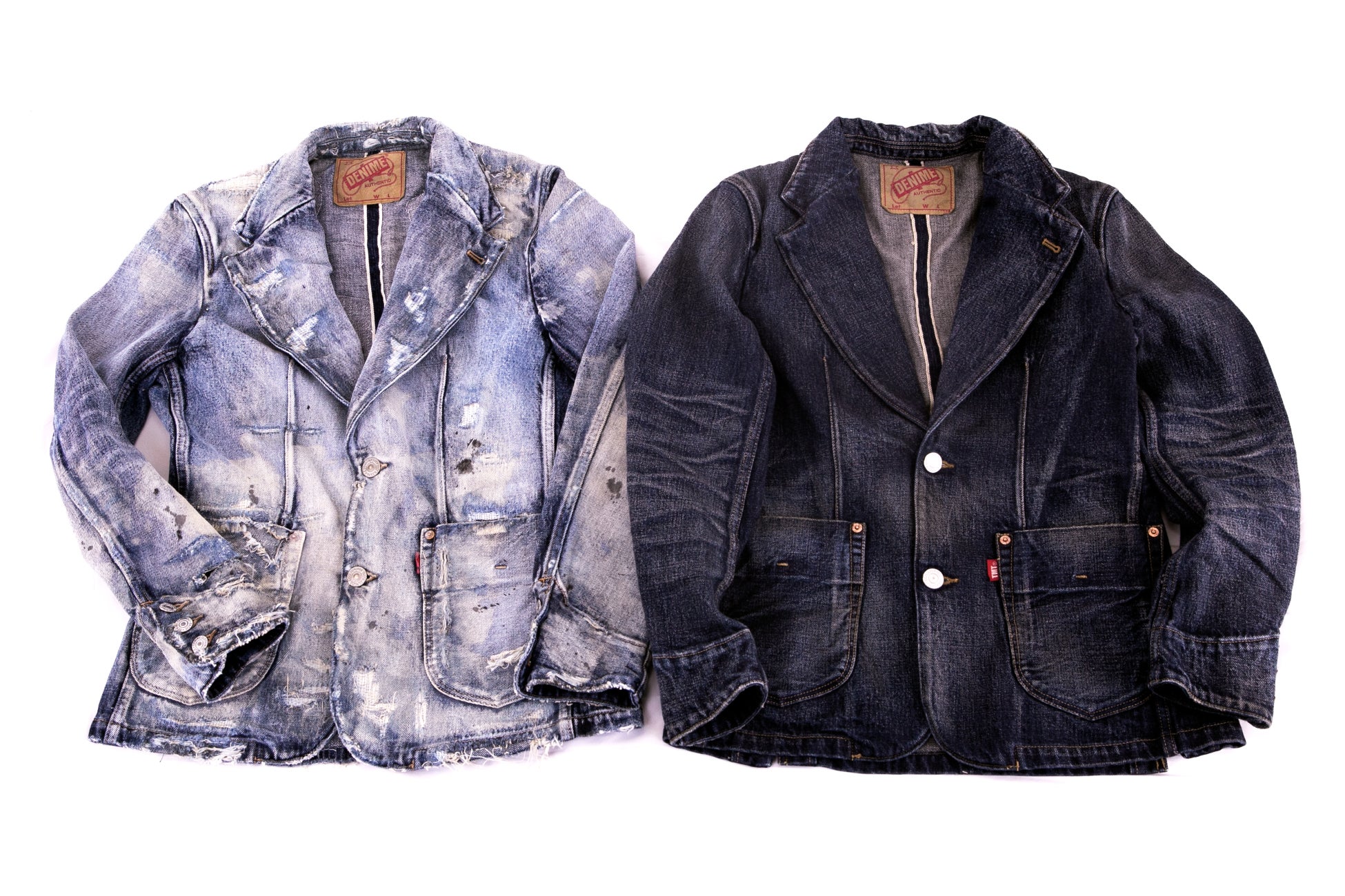 大きめのラペルやポイントにピスネーム見せといったTMTらしさをとりいれ、100年後のデニムを想定したハードな加工感を出しました。