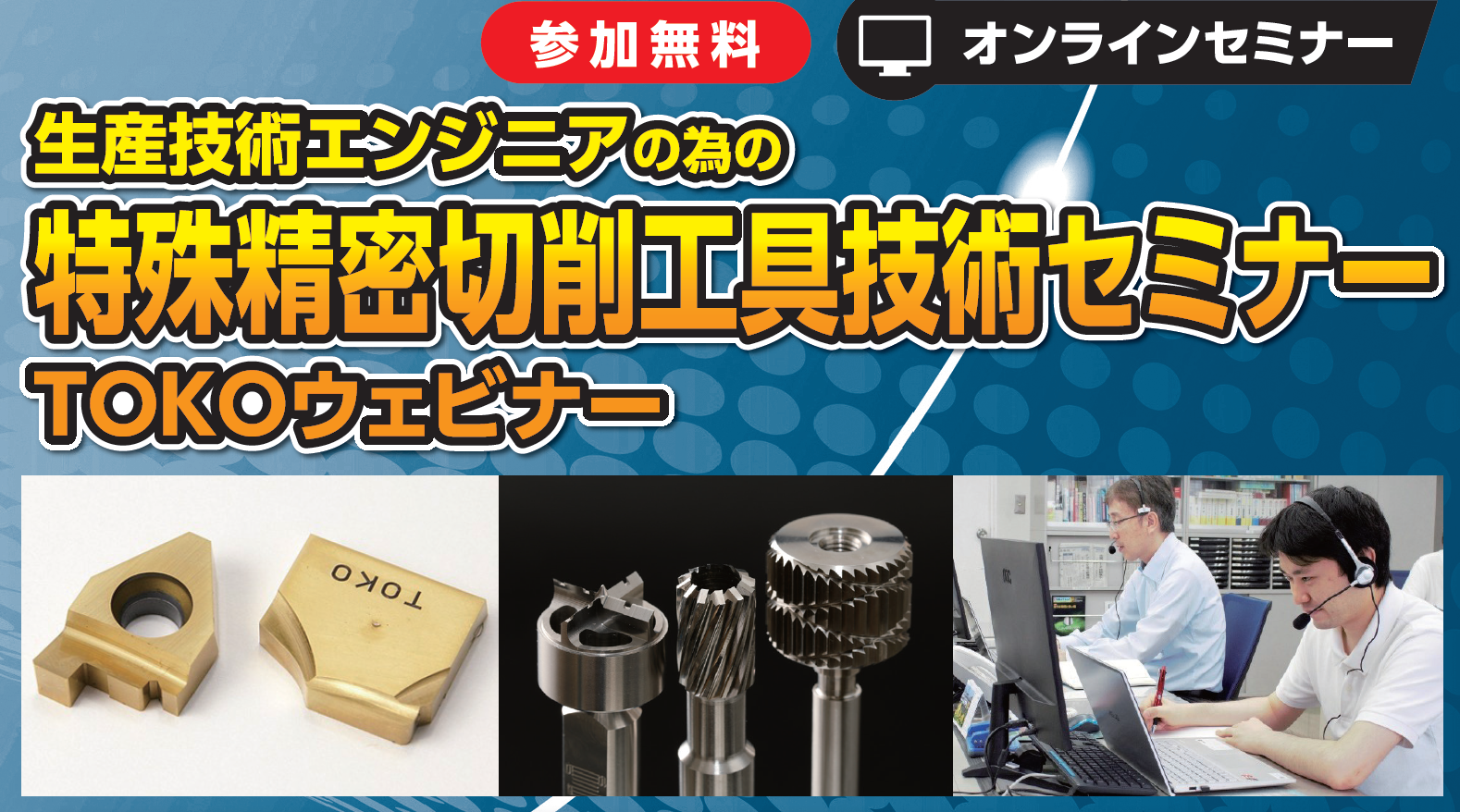 株式会社東鋼(本社:東京都文京区、代表取締役:寺島誠人)は、切削工具に関するセミナーを全6回無料で開催いたします。昨今の情勢にあわせて、より多くのお客様にご覧いただけるように、オンラインで開催いたします。
