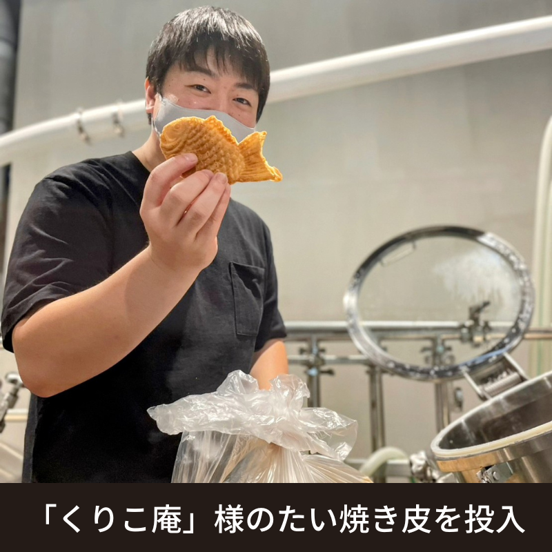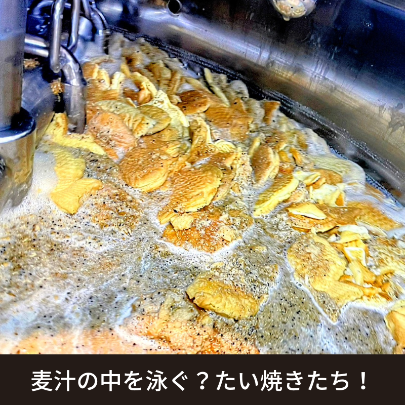クラフトビールの醸造過程の仕込みの段階で、同社で作られたたい焼きの皮を投入。たい焼きに使う小豆は焙煎(ばいせん)して使用しております。