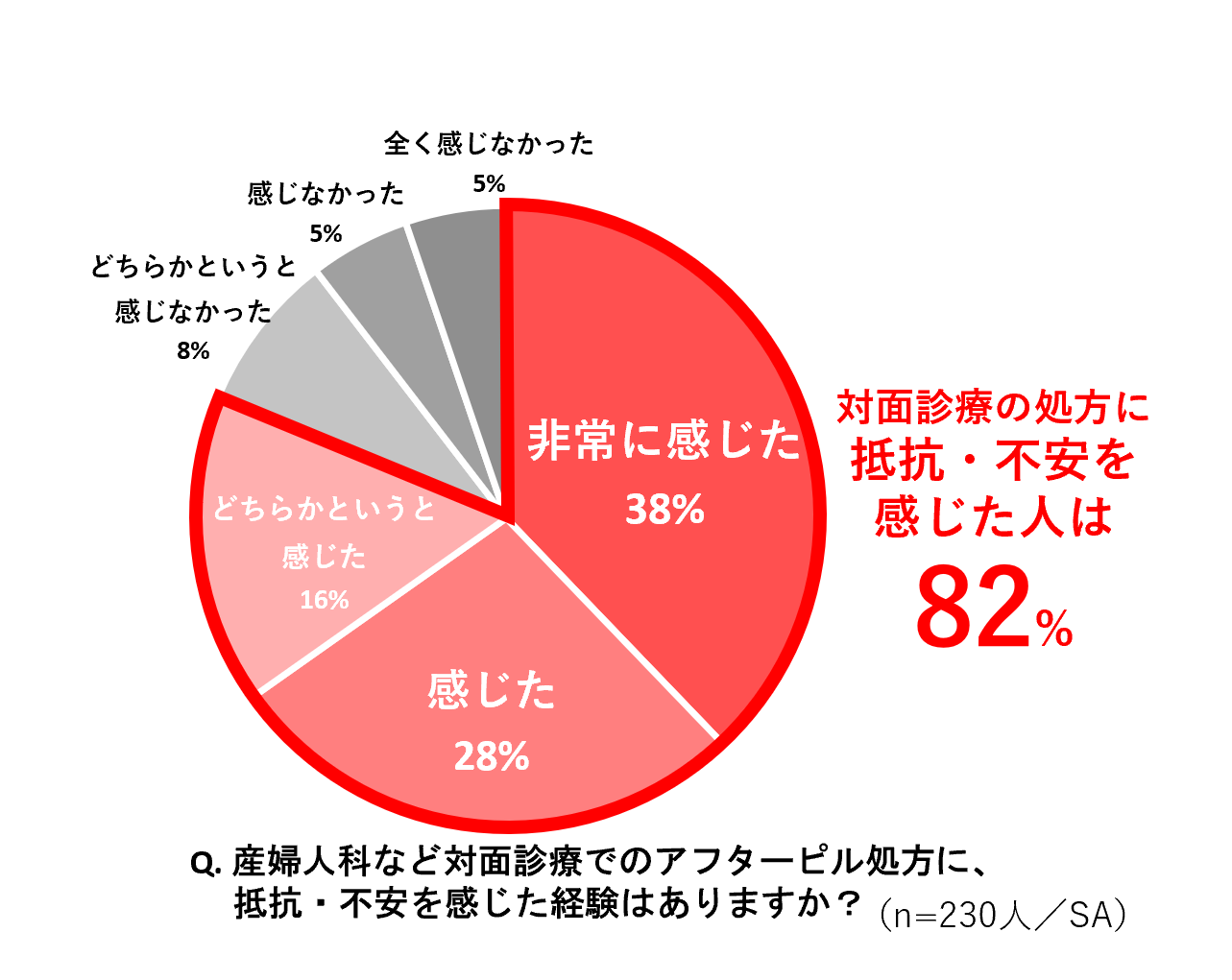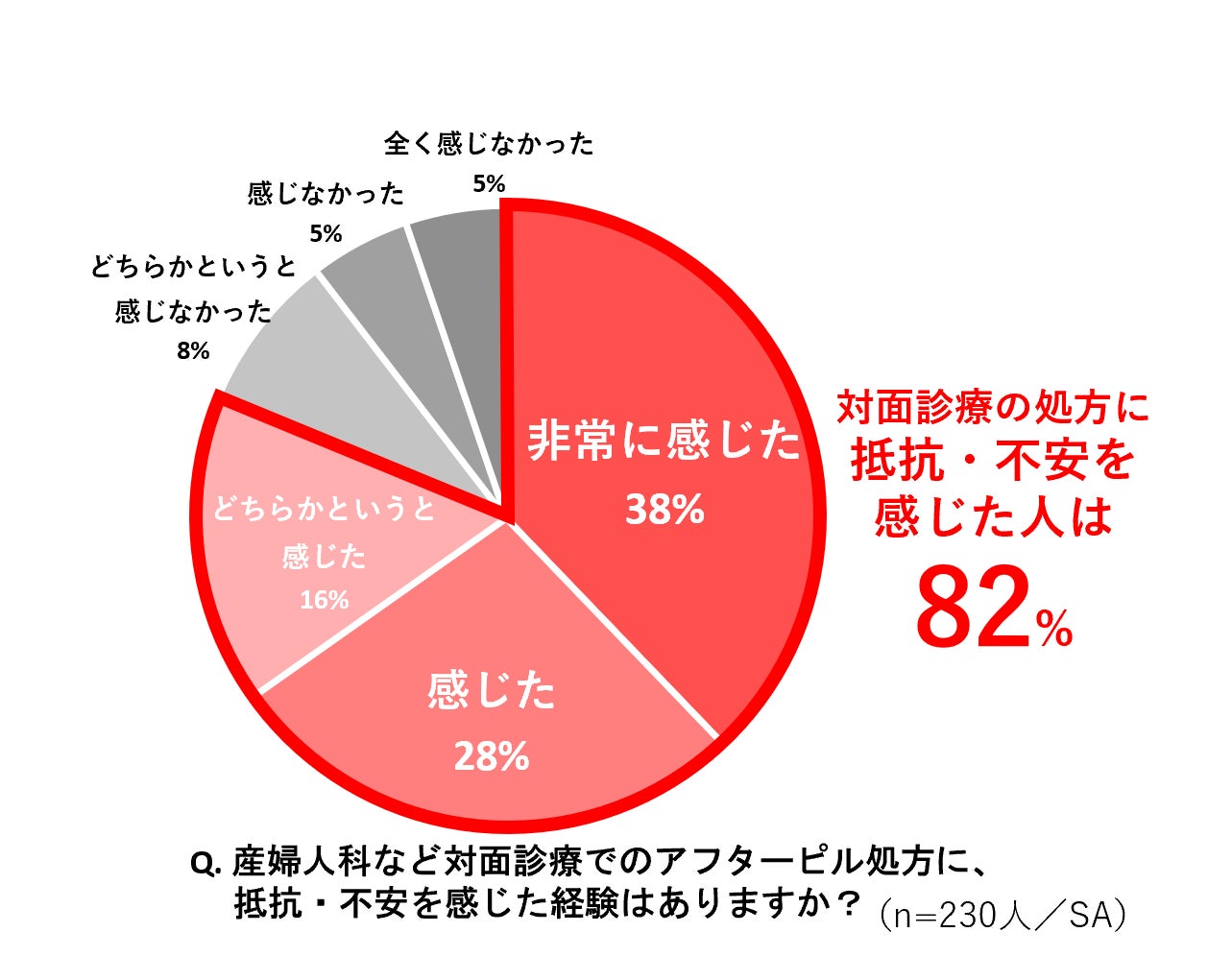 対面診療のアフターピル処方に、抵抗・不安を感じた人は約8割