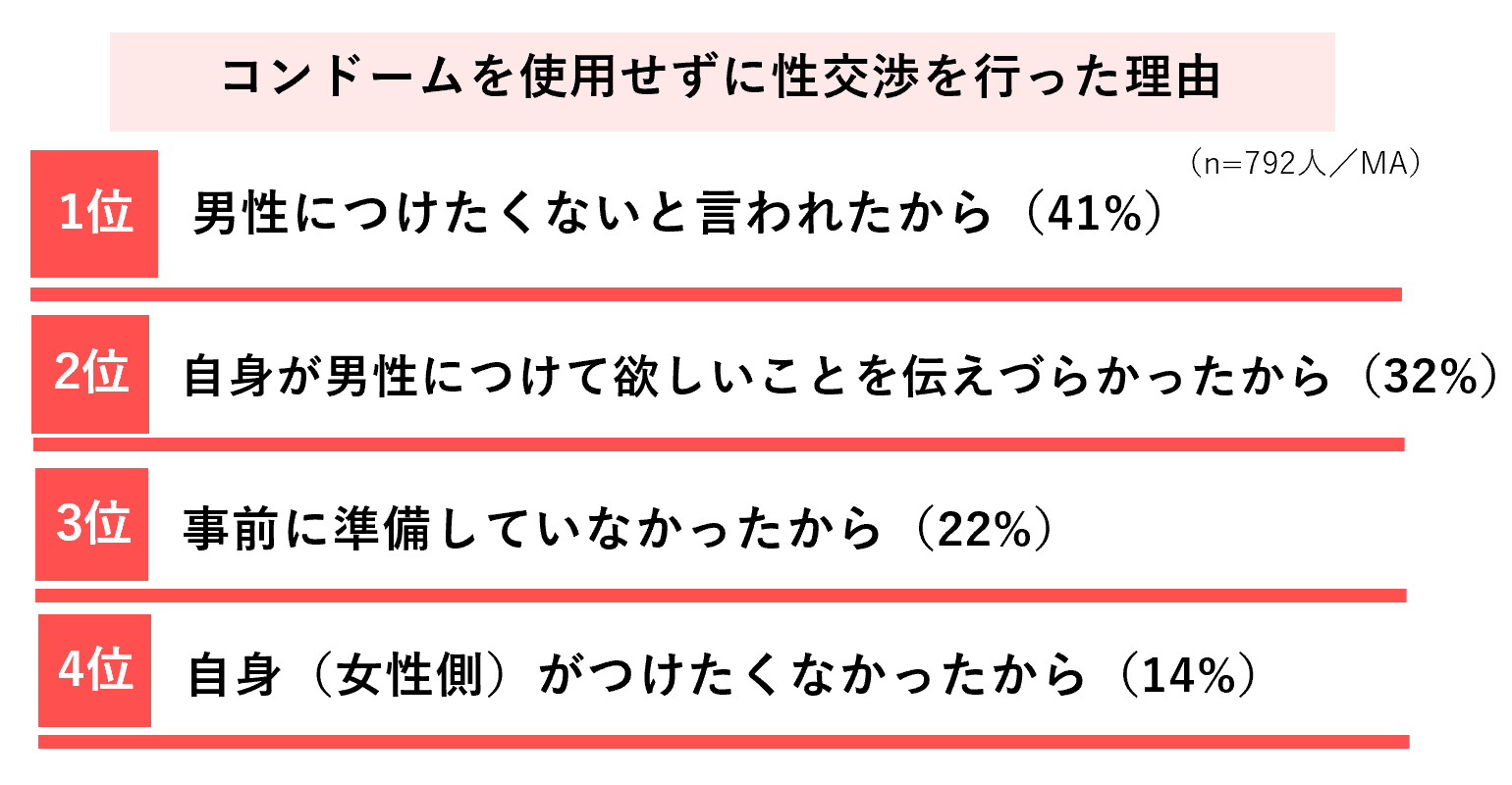 コンドームを使用せずに性交渉を行った理由最多は「男性にコンドームをつけたくないと言われたから」