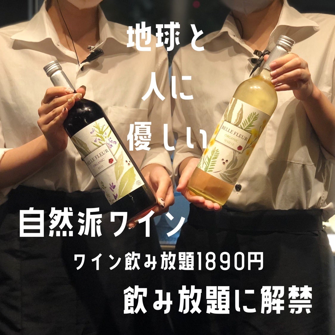 さらにその「オーガニックワイン」が全て飲み放題で楽しめて、初心者でも自然派ワインを身近に感じていただけます。