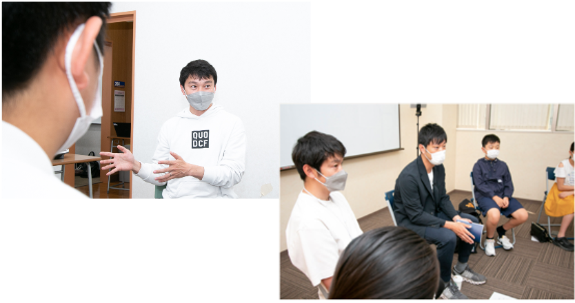 「先生は子どもの頃何が好きでしたか?」という石橋くんの問いに対して、東村先生は「動物!」と答えます。東村先生は全教研教員として教壇に立つ以外にも、エコアドベンチャーという企画で子どもたちが動物と触れ合う企画も担当しており、“自分の好き”を仕事に生かしている。「塾って必要ですか?」という先生からの質問に石橋くんは「学校では勉強が好きな子、嫌いな子に分かれる。けど塾いけば話が合う」と、塾に通うことの意味を実際に塾に通う生徒目線で答えてくれました。