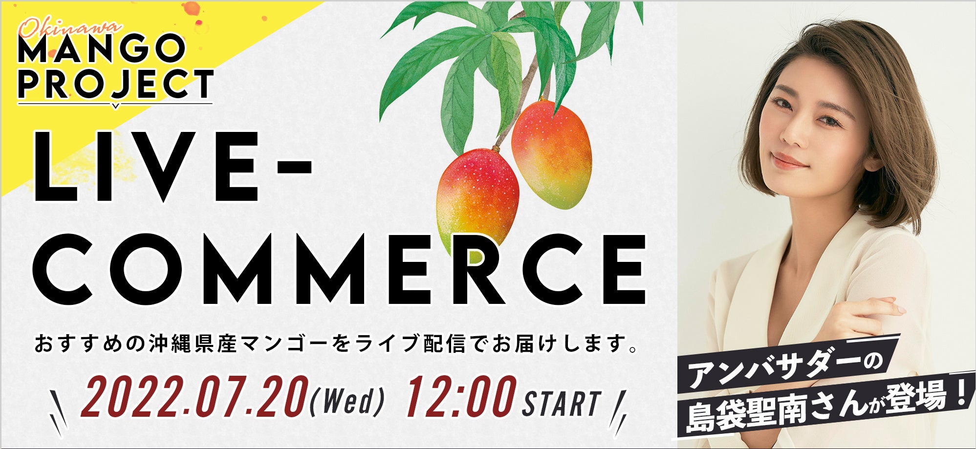 7/20(水)12:00〜のライブコマースでは、プロジェクトアンバサダーの島袋 聖南さん、マンゴー農家さんの楚南 盛世(そなん もりよ)さんにご出演いただき沖縄県内より配信。県産マンゴーの美味しさと沖縄の美しい風景をライブでお届けします。購入者特典として、抽選でペア沖縄行き航空券など、さまざまなプレゼント企画もご用意しております。