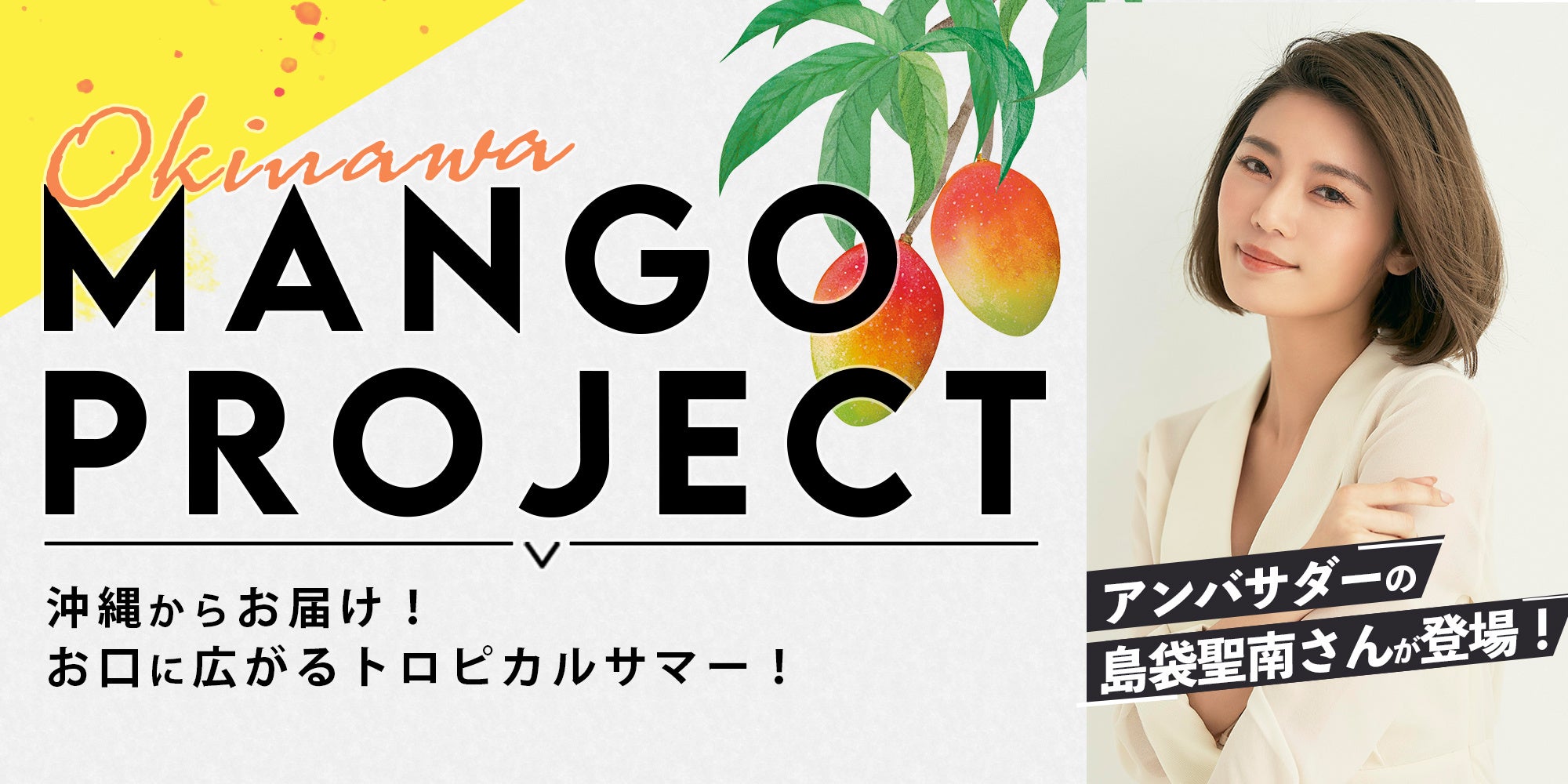 沖縄マンゴープロジェクトでは、沖縄を代表する南国のフルーツ・マンゴーをホームページとライブコマースで販売します。アンバサダーには沖縄県出身の大人気モデル・島袋聖南さんをお迎えし、県産マンゴーの美味しさと魅力をアピール!県内でご活躍されているマンゴー農家さんのPRや販路拡⼤を⽀援いたします。