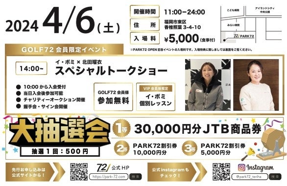 香椎照葉に複合施設プロジェクト「PARK72」誕生!! プレオープンイベント(4月6日)に「元女子プロゴルファー イ・ボミさん」来店!!
