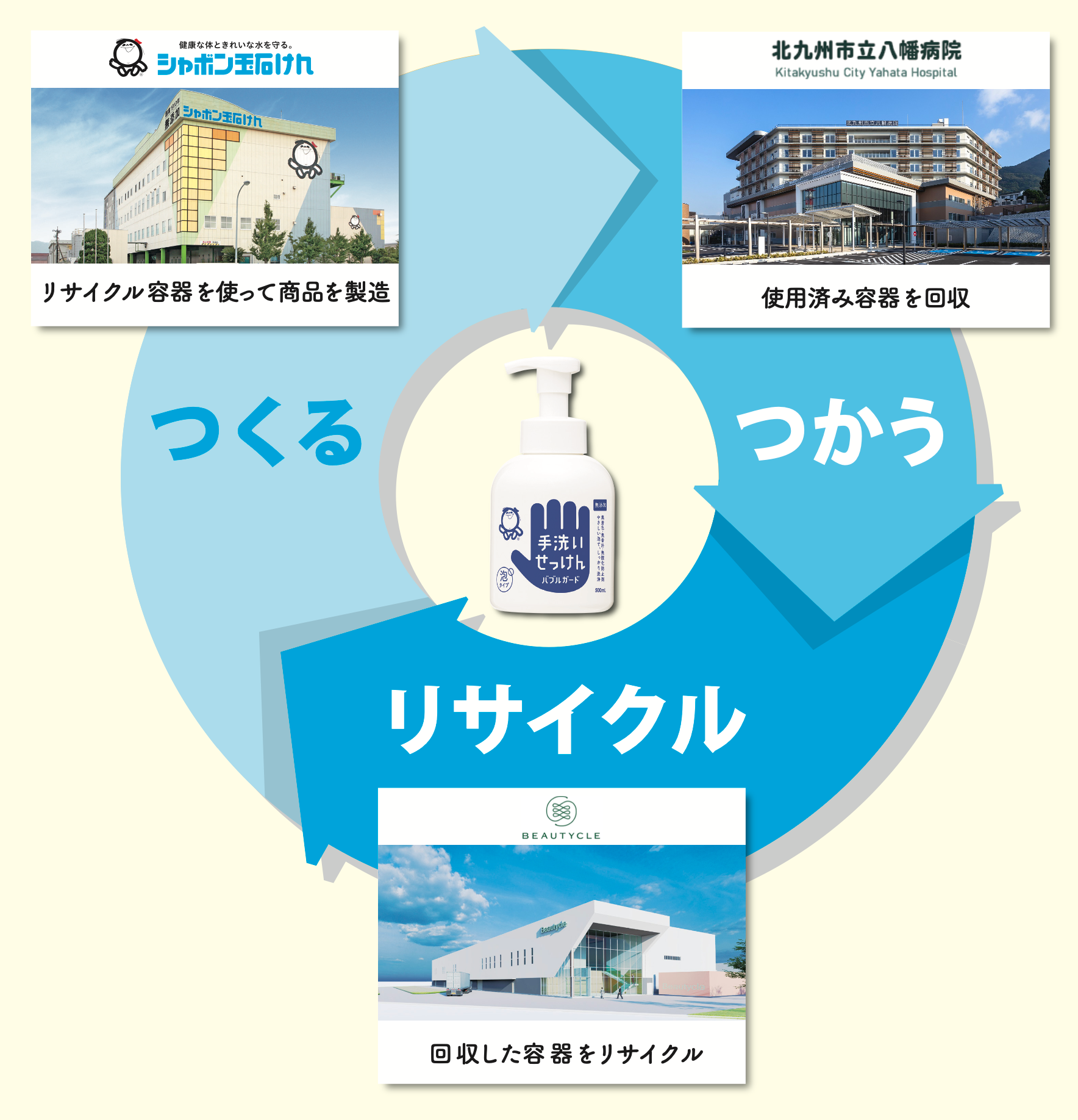 水平リサイクルプログラムにより北九州市立八幡病院内で使用するハンドソープを再利用