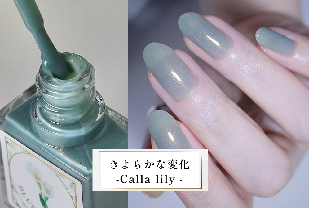 ホワイトとグリーンのコントラスト、すっとした、たたずまいのカラーからインスピレーションを得たノーブル・グリーン。ほんのり青みをおびた色彩とパールが多彩な表情をつくりだし「きよらかな変化」を表現しています。