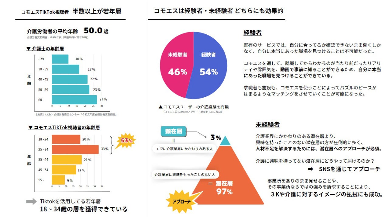 ∟介護労働者の平均年齢は50歳だが コモエスの視聴者は18歳~34歳が半数以上を締めている