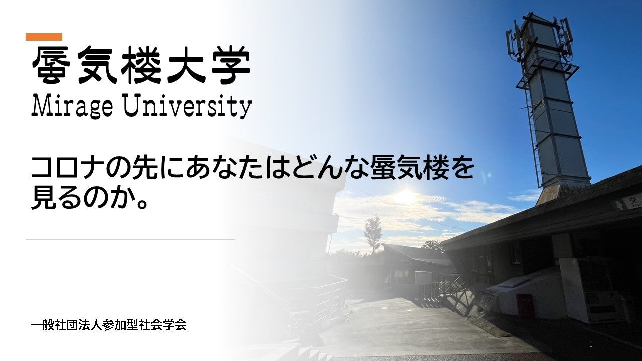 私たちの生活している社会の新しい次元の社会は「参加型社会」であると確信した橘川幸夫、田原真人、平野友康、高野雅晴の4人は「一般社団法人参加型社会学会」を創設し、記念のイベントとして、コロナ状況で積み重ねてきた関係性によるイベント「蜃気楼大学」を開催します。さまざまなテーマについての最前線の問題意識と最新情報が集まります。