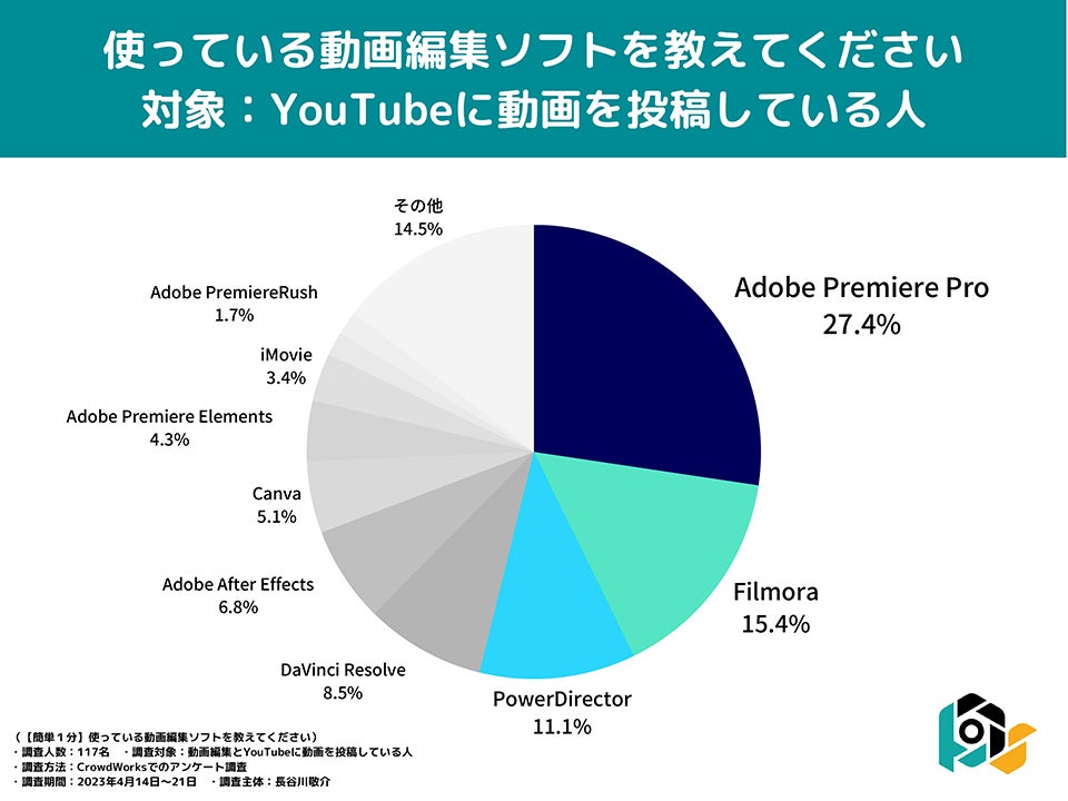 使っている動画編集ソフトについてアンケート調査をしたとこと、1位は「Adobe Premiere Pro」でした。