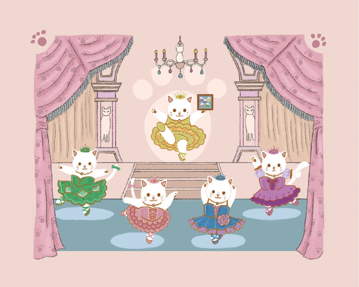 キラキラ輝くドレスやネックレス、ティアラを身にまとったバレリーナの猫たちが踊っているお菓子の缶。