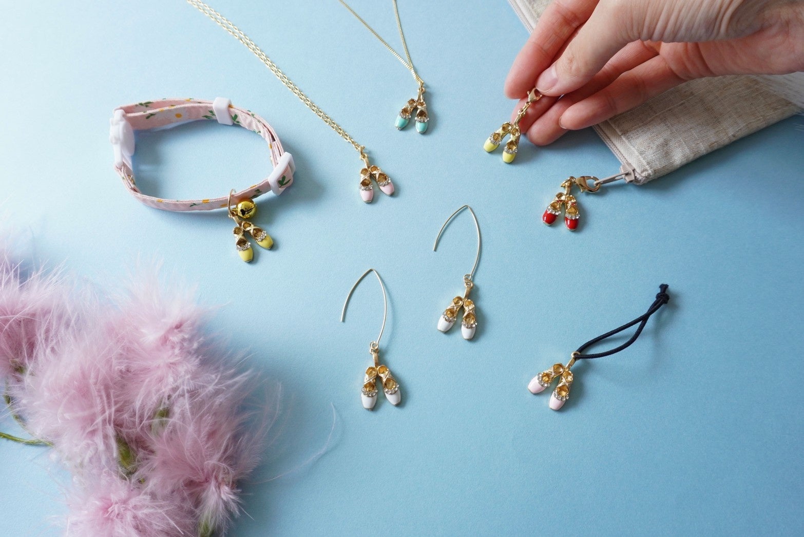 ミニチュアバレエシューズはヘアゴム、ネックレスやポーチのチャームなどにアレンジできます。