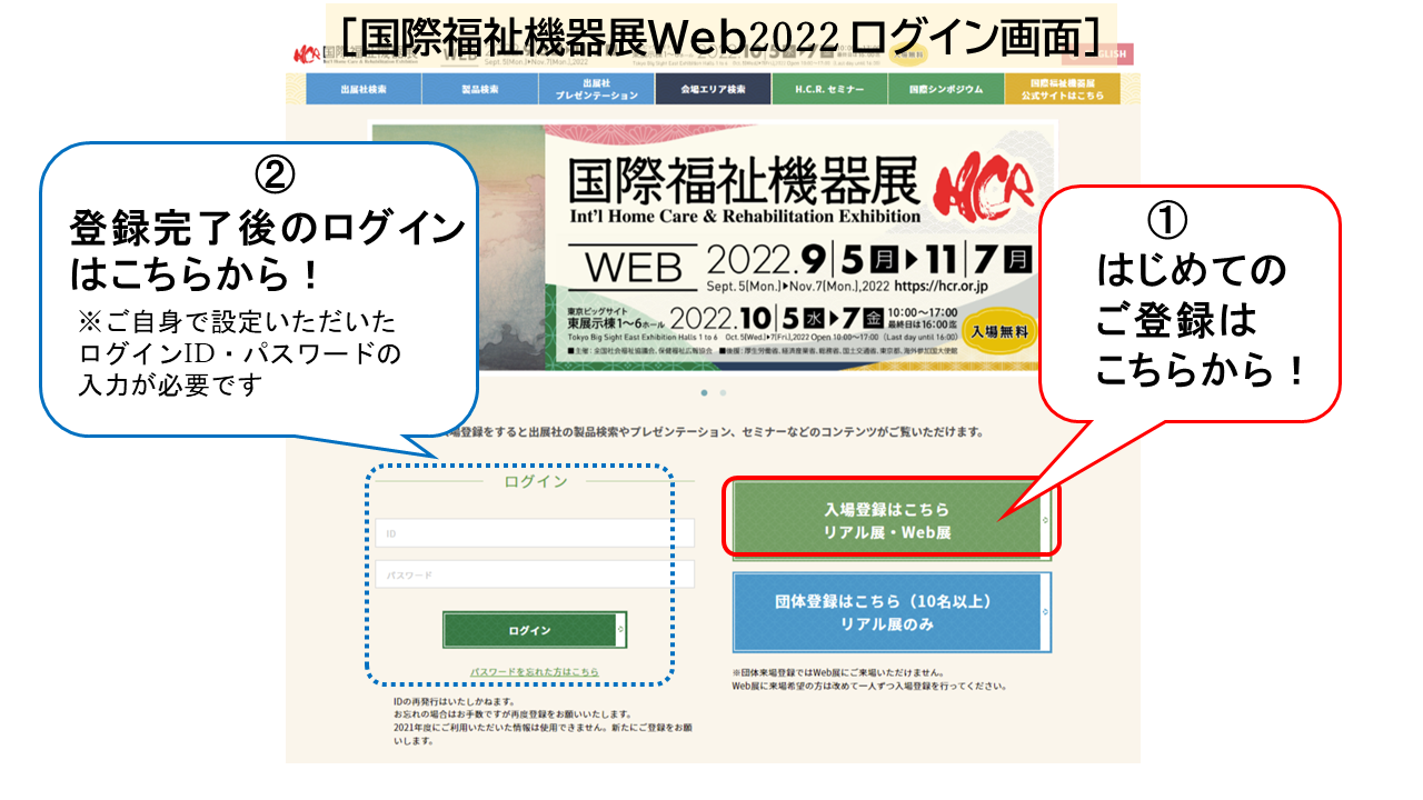 ◆国際福祉機器展Web2022へのご登録・ログイン