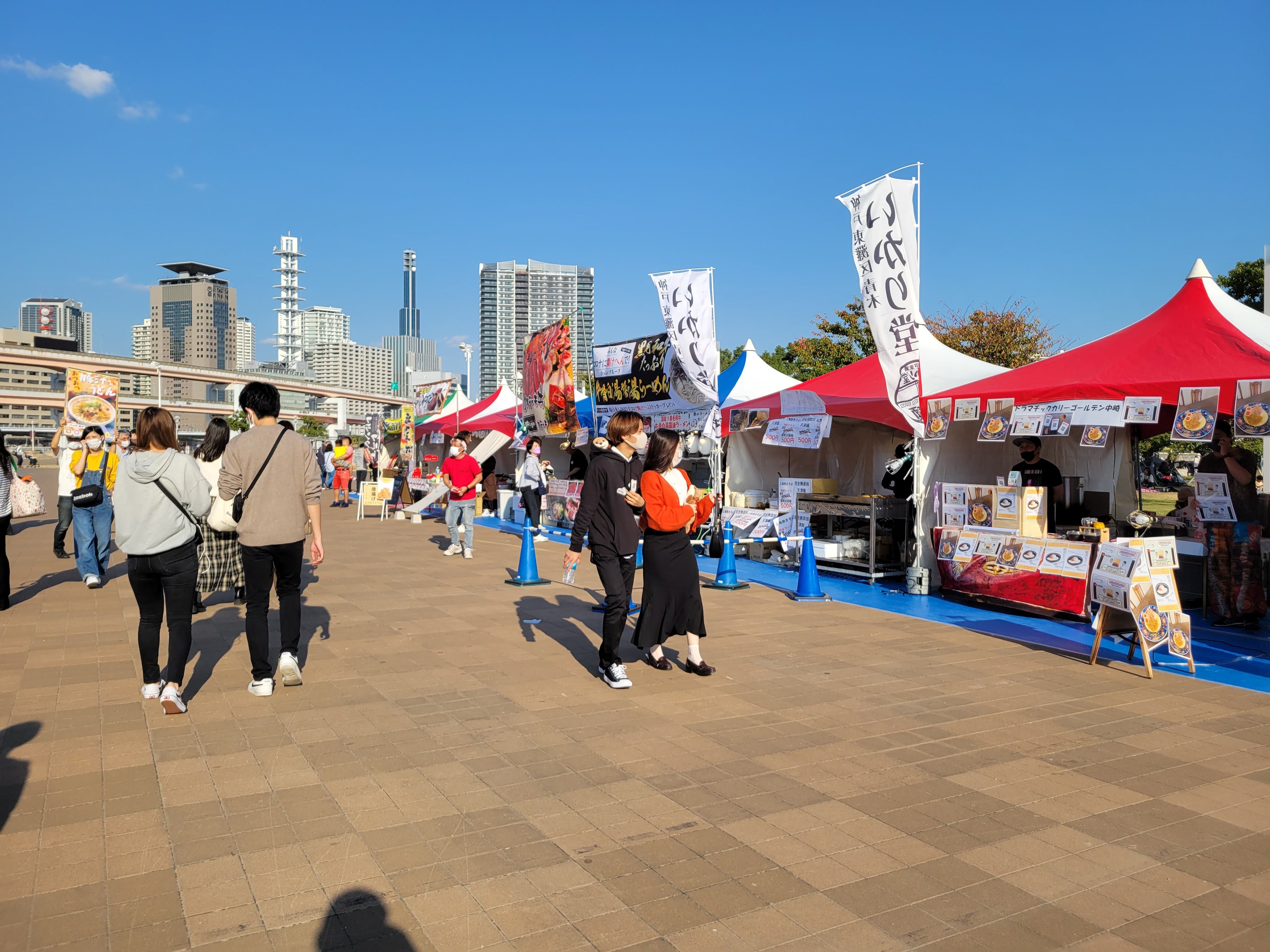 正午ごろより、多くのお客様がご来場。ずらり並んだグルメ屋台の美味しい料理を楽しみながらステージを楽しみ食後は縁日ブースで遊ばれるなど3つのエリアを満喫されているお客様が大勢おられました。