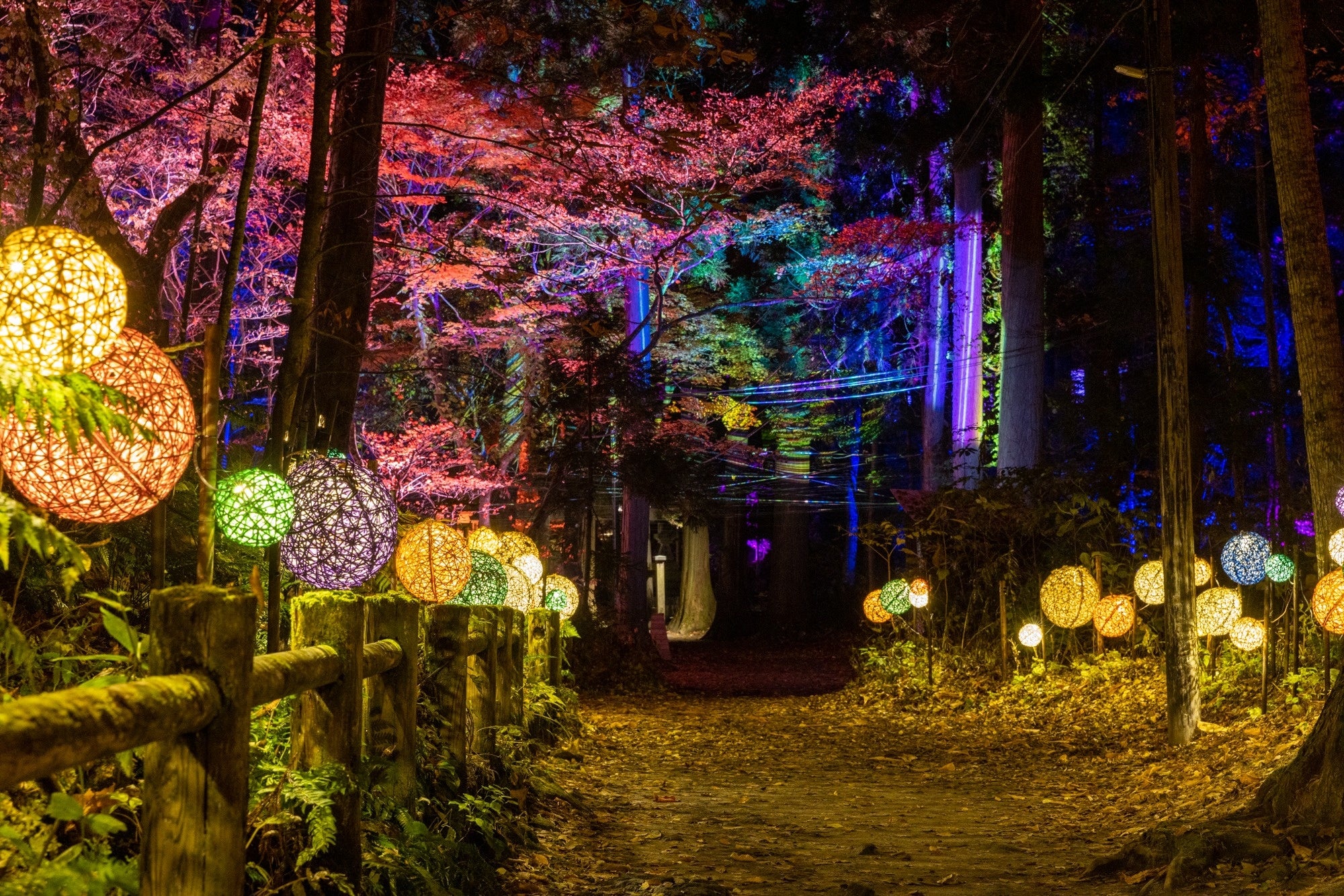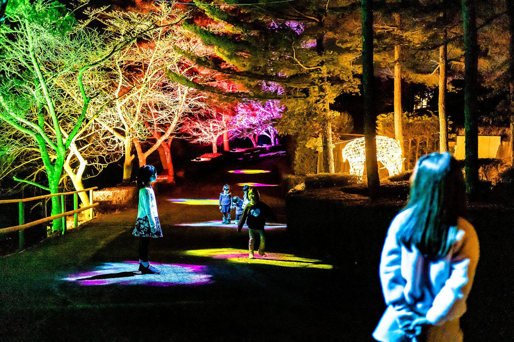 宍道湖を望む32ヘクタールの緑豊かな丘陵地で、様々な鳥のイルミネーションやカラフルなライティングが普段は訪れることのできない、夜のフォーゲルパークを彩り、ここでしか味わえない幻想的な空間を楽しむことができます。