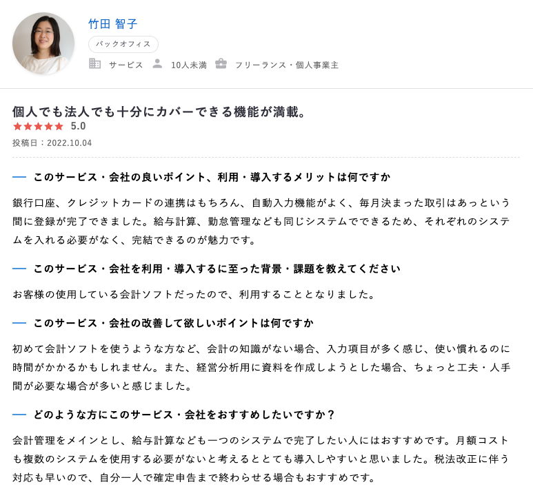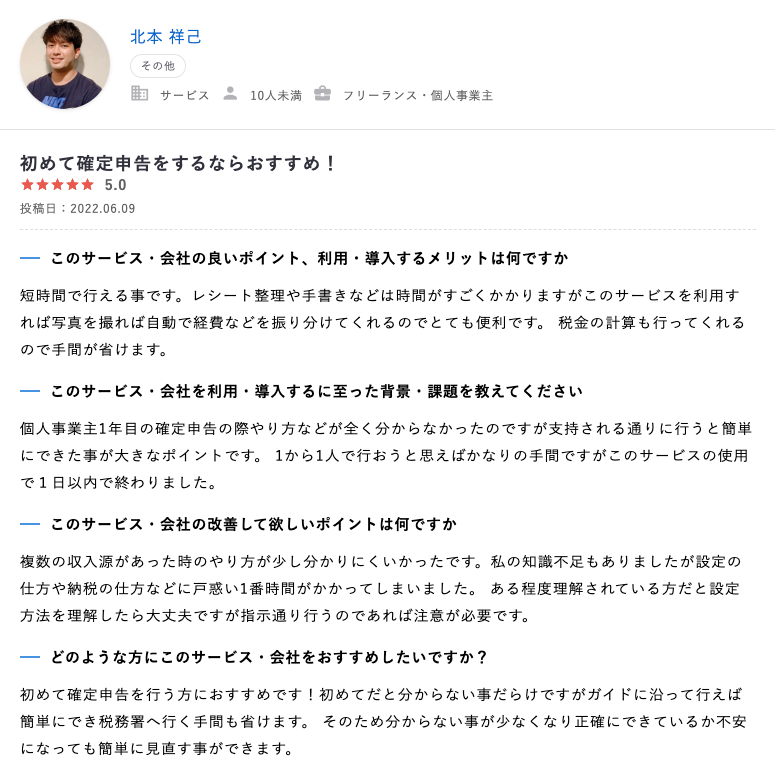 フリーランス1年目でも、安心して使用できる点などを評価されたレビューなどが投稿されております。