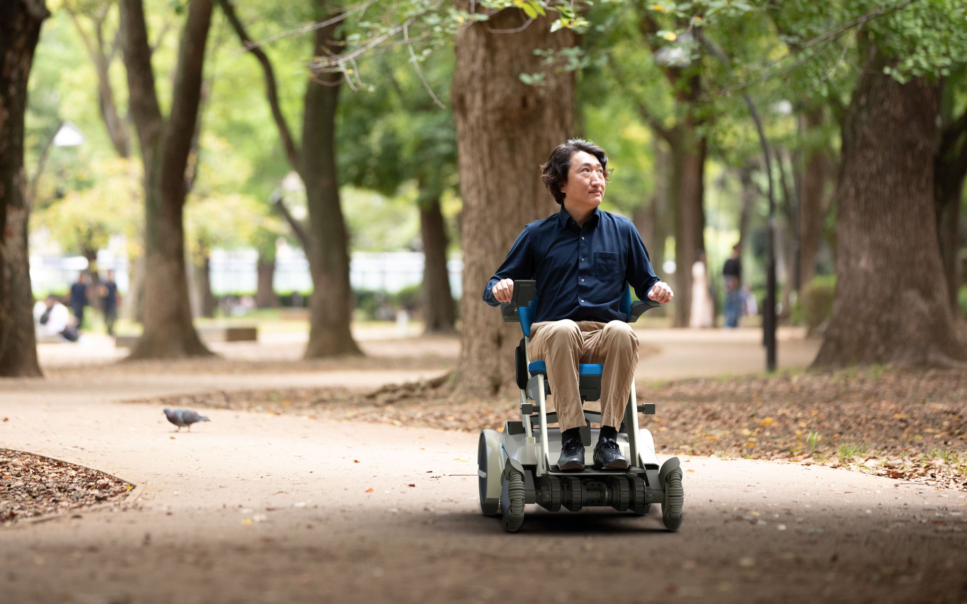 平地での車輪での走行に加え、クローラーによる段差や不整地での走行システムを備え、平坦な舗装路のみならず起伏の多い地形も走行可能など、従来の電動車いすに比較して行動範囲が大幅に拡大します。