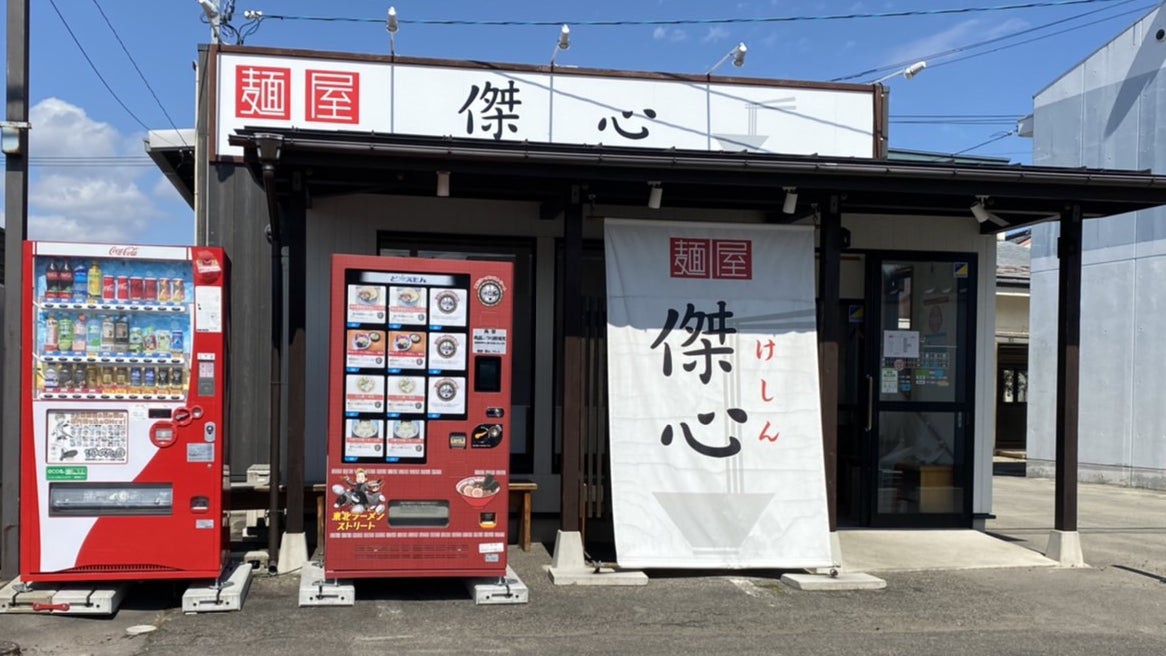 東北ラーメンストリートのラーメン自販機が設置されている「麺屋 傑心」さん