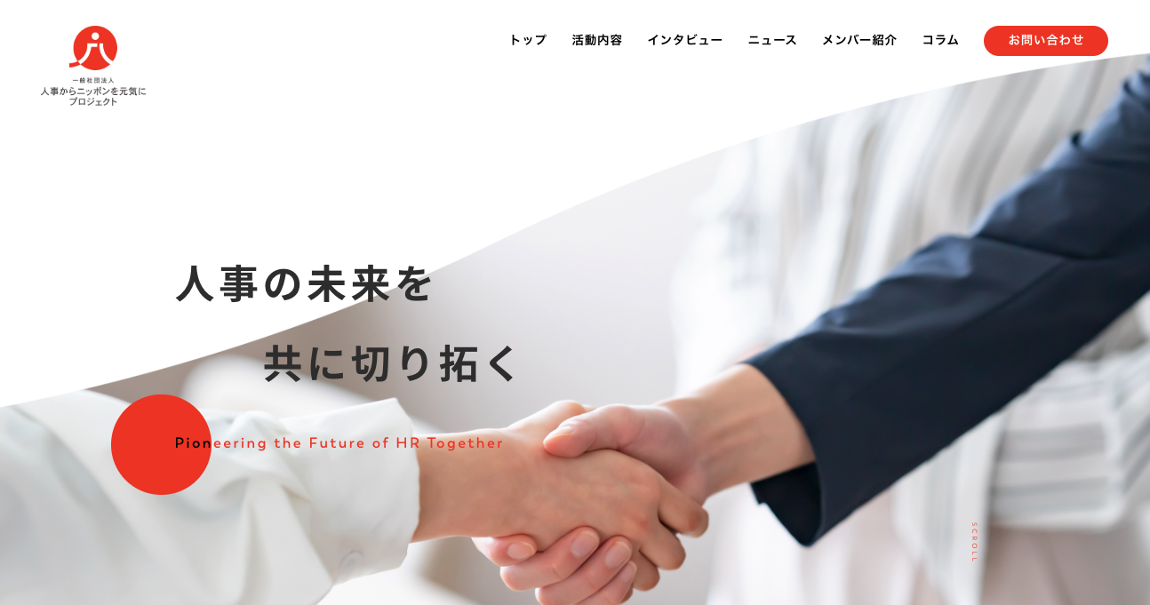 人事の未来を切り拓くことを目的とした日本最大級の人事コミュニティ運営を行う、一般社団法人人事からニッポンを元気にプロジェクト(本社:東京都渋谷区、代表理事:辻 翔武、以下「人事からニッポンを元気にプロジェクト」)(https://nippon-jinji-project.org/)の公式HPがオープンしました。