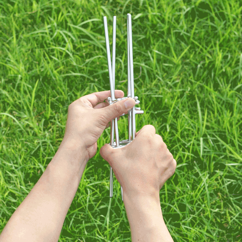 薪を組むという地味な作業を簡単にしてくれるのがmakitate Lです。ステンレスの丸棒だけで出来た、頑丈かつシンプルな構造。可動式になっており、ねじるだけで簡単に薪を支えてくれるので薪が立てやすくなります。薪を立てることにより生まれるティピー型によって、美しい炎を体験することにもつながる便利で頼れるアイテムです。4本の脚が自立しているので凹凸や斜めの場所でも自立します。多種多様な焚き火台の中に入れても使用可能です。