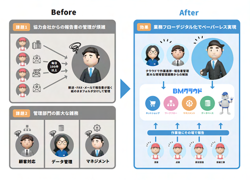 「BMクラウドネットショップ」で建物管理の業務フローをデジタル化、年間 約90%(※)の紙削減に成功