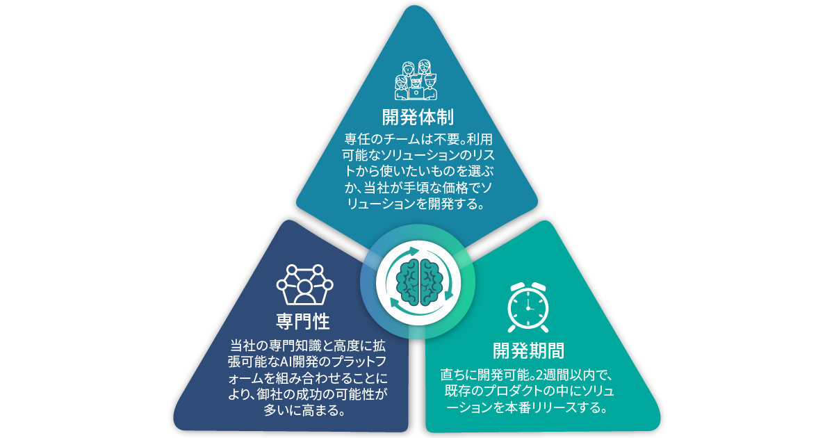 - 自社でAIソリューションの開発をするためのリソースや専門性を持たない企業