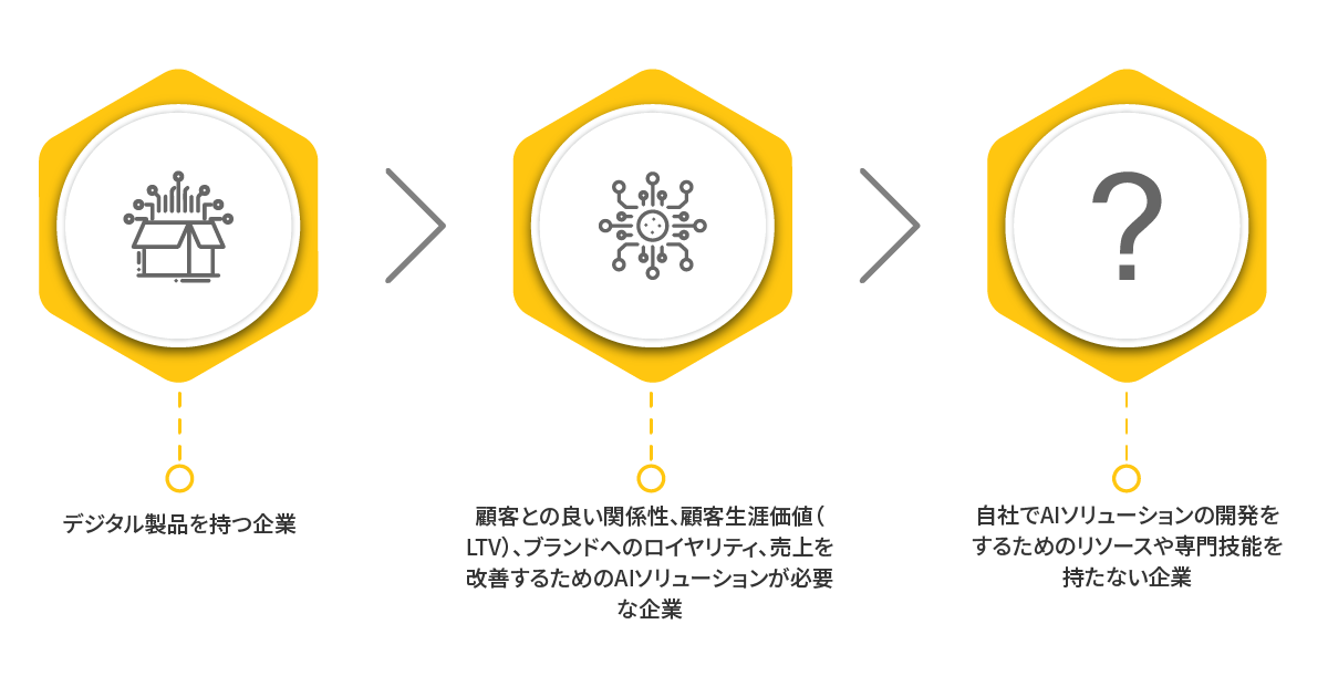 - 顧客との良い関係性、LTV、ブランドロイヤリティ、売上を改善するためAIソリューションが必要な企業