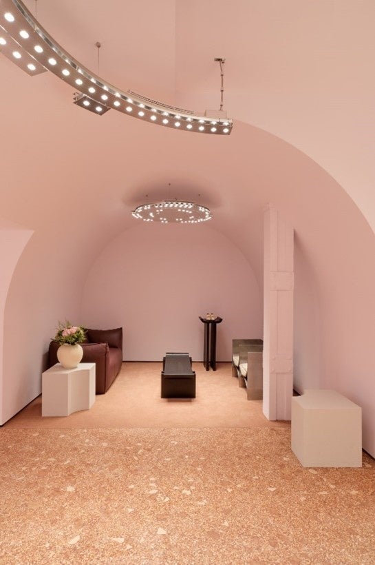 まるで浮遊しているような照明器具は、ブランドのコレクションに新鮮で繊細な光を投げかけ、柔らかな丸みを帯びた空間と相互に作用しながら、プロダクトをより魅力的に見せています。