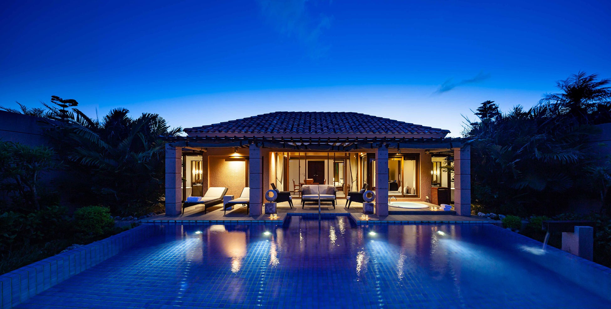 施設概要:〈全室完備 温水プライベートプール、デイベッド、ジャグジー、サウナ〉レセプション、専用カート、シギラスタイルのオールインクルーシブ、バトラーサービス
