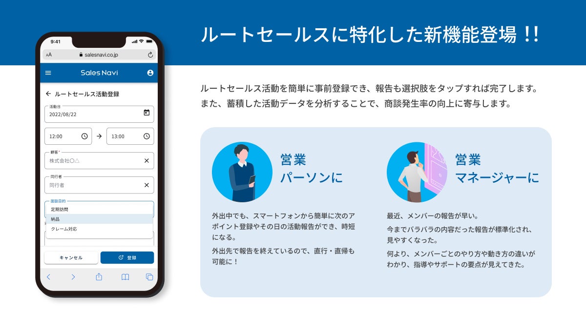 Sales Navi、ルートセールスの成果向上に役立つ新機能をリリース
