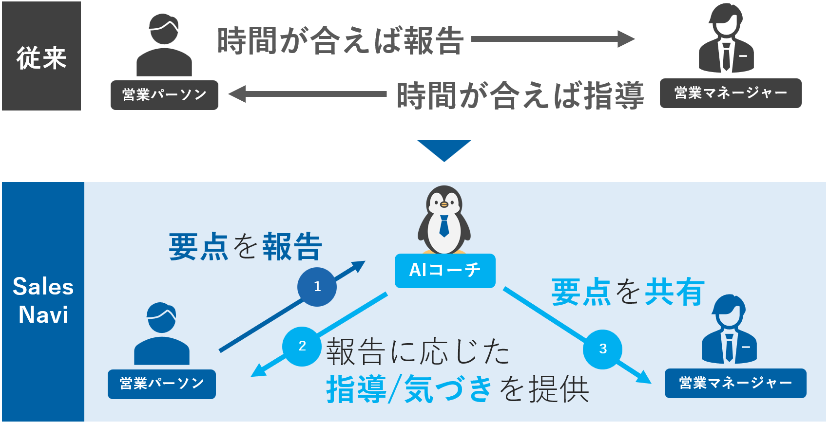 ・成功事例の共有:複数拠点を持つ企業では営業手法や教育が属人化・局地化しがちで、成功事例の共有は困難です。新機能は拠点の垣根を超えたノウハウの可視化と情報共有を実現し、営業マネージャーによるメンバーの指導、育成業務を支援します。