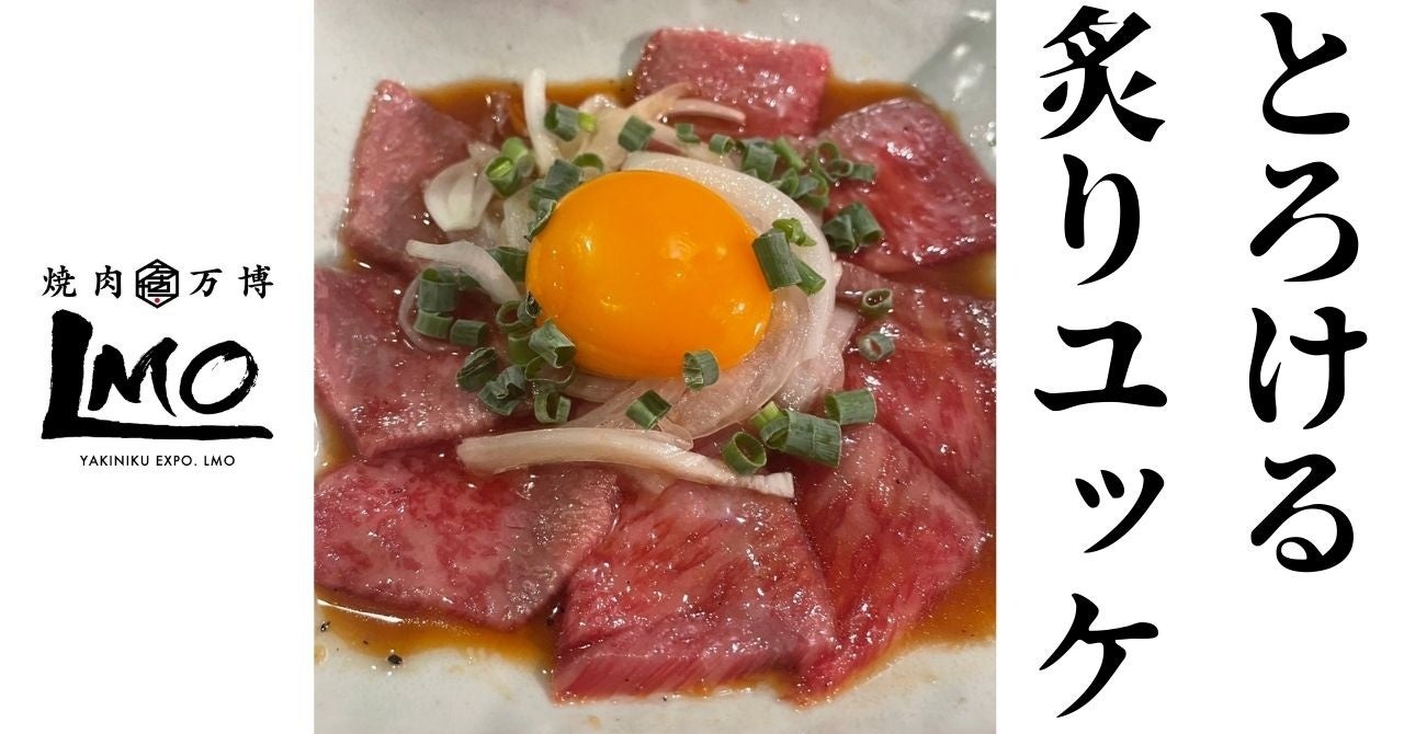 焼かせない焼き肉「焼き肉万博LMO」、黒毛和牛A5ランクのリブロースを使用した新メニュー「とろける炙りユッケ」の提供を2023年9月6日(水)よりスタート!