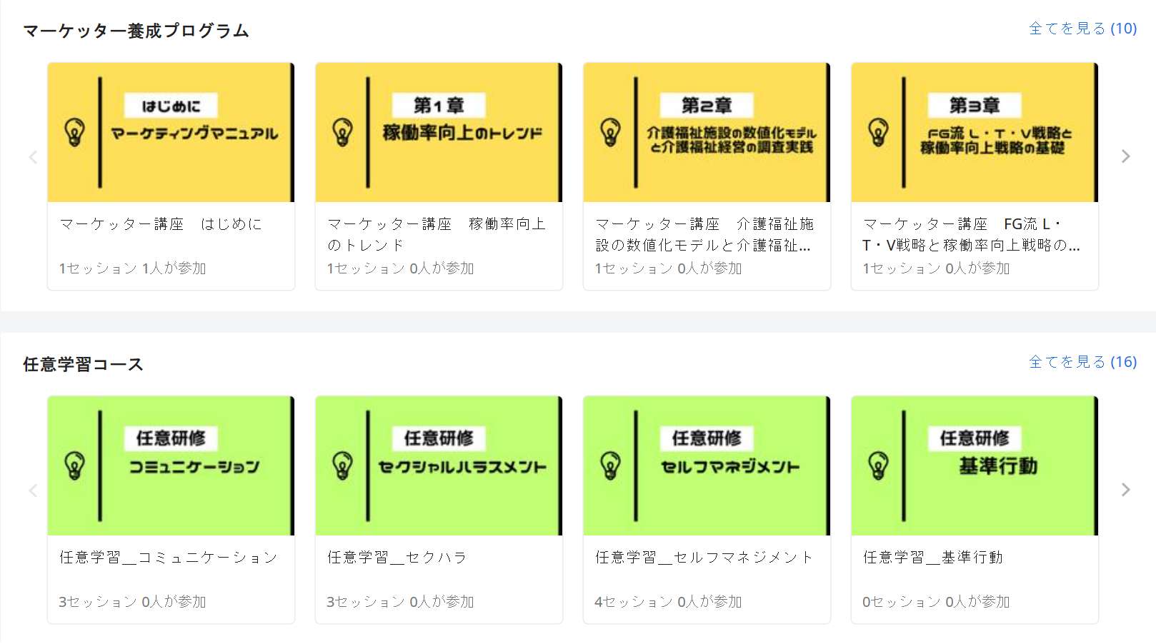 職員採用、稼働率アップ(収益向上)などに必要な考え方をはじめ、任意研修が受講できる内容も盛り込んでおります。