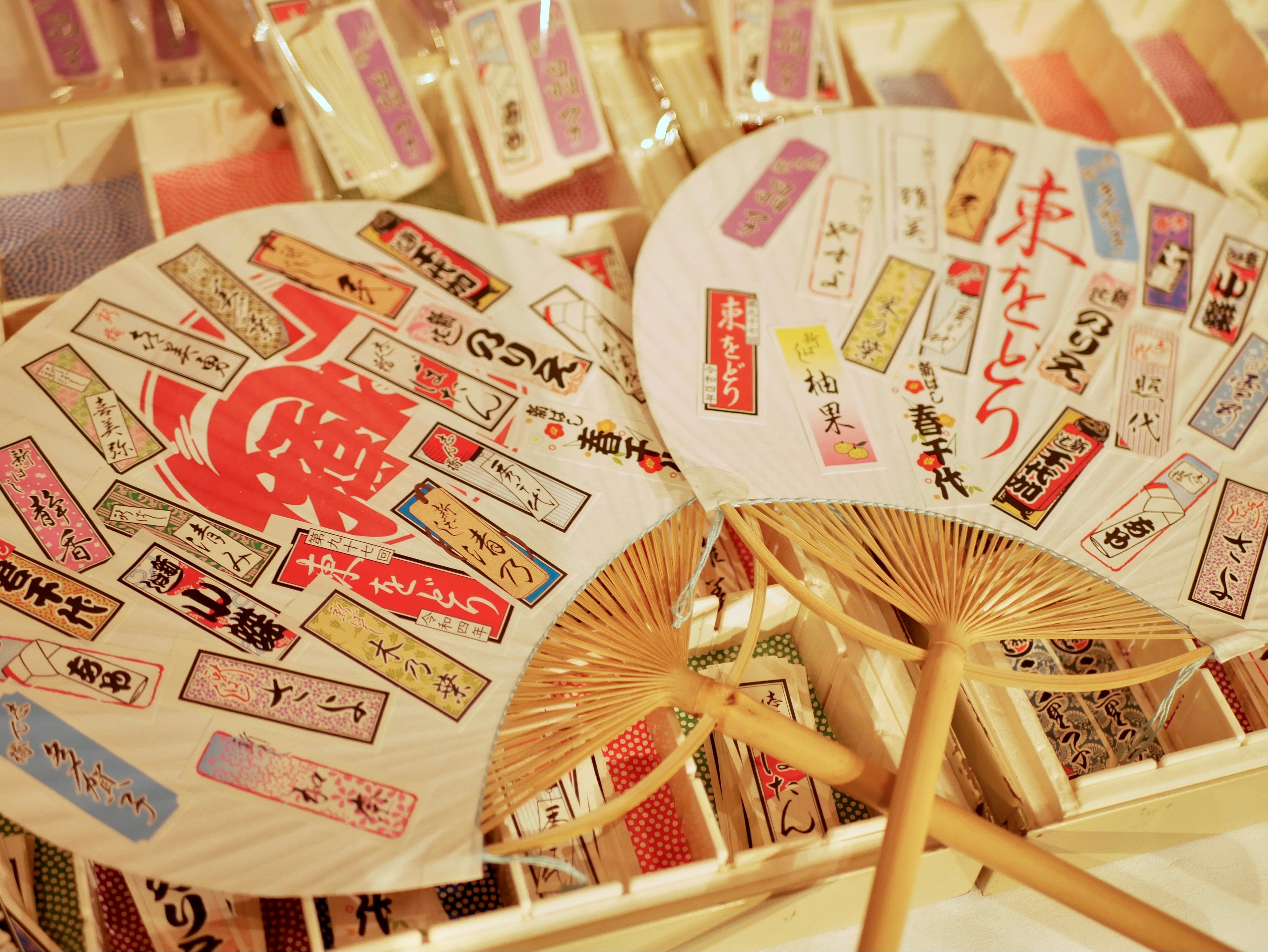 芸者衆の千社札、それでデザインする江戸団扇、自分自身のオリジナル千社札のご注文など遊び心に満ちたお土産をご用意。